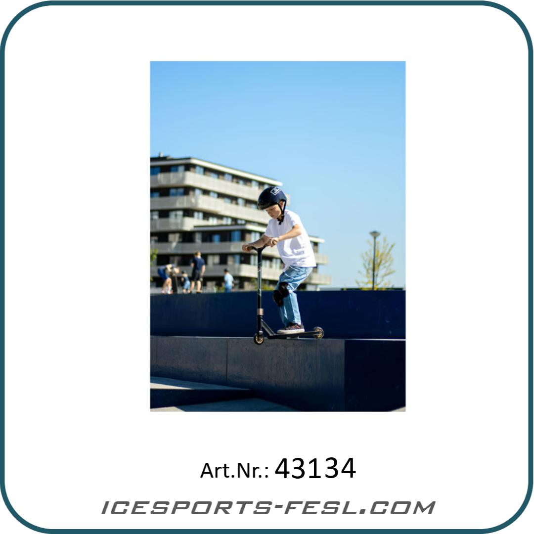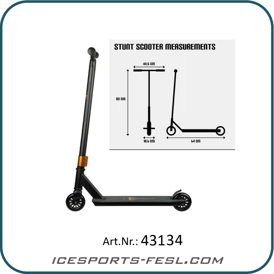 Der stabile und robuste Stunt Roller 83-100 hat eine starke rechteckige Rahmenkonstruktion. Das Gestell ist aus einer Aluminium/Hochleistungsstahl Kombination gerfertigt und ist nicht faltbar, jedoch die Lenkstange abnehmbar.