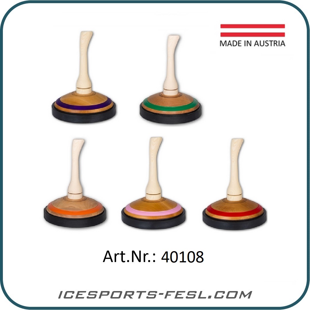 This durable and high-quality ice stick is made from Austrian pear wood. The handle is made of ash wood with a straight grip. The ice stick runs on a wooden sole that cannot be replaced. This hard-wearing and extremely popular wooden event curling stick with coloured ring is particularly popular at curling events and ensures that curling is always fun.