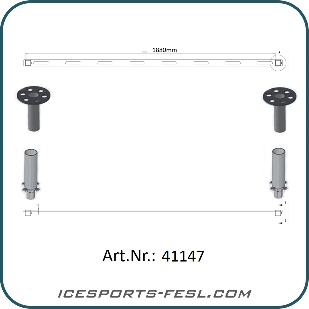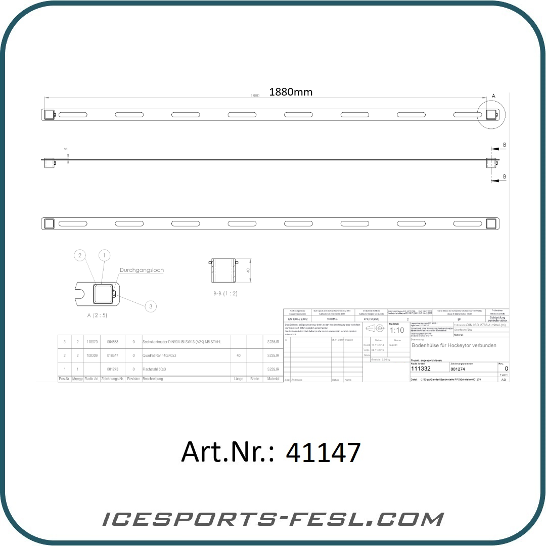 Fixing rail for Flex-Pegs gate anchors. Ready for installation on concrete base or stone ash field. The set consists of 2 mounting rails for 2 ice hockey goals. The goal mounting substructure for installation in the not yet concreted surface and for welding to the reinforcement for FlexPeg goal anchors.