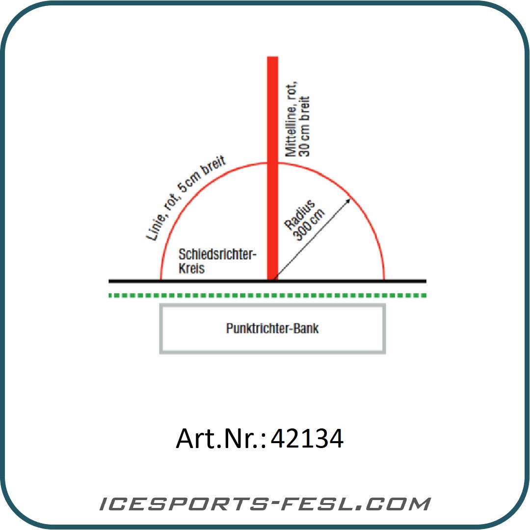 Reusable ice hockey referee circle. Complies with the official specifications of the IIHF, SEHV, DEL DEB and the FISG, CONI and is suitable for competition use. Made from a special and robust mesh fabric, the material is colour-stable and very easy to handle. The lines are pre-printed and therefore do not need to be cut to size