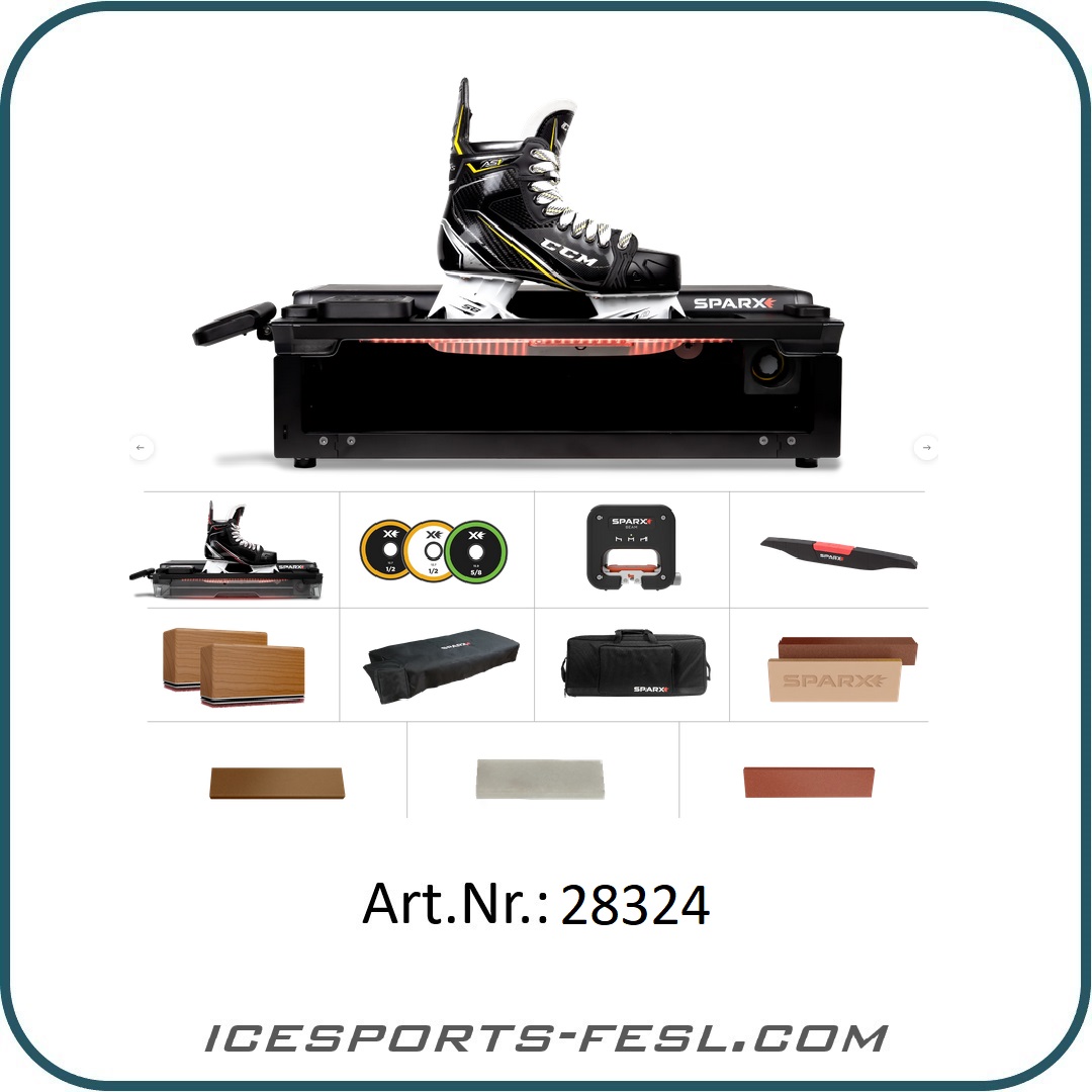 The SPARX ES300 skate sharpening machine is the perfect entry-level model for automatic skate sharpening at minimal investment cost. Intelligent operating functions, high-quality workmanship, and very practical additional adjustment options ensure perfect grinding results right from the start. This compact and mobile skate sharpening machine offers an ideal solution for teams and individuals who are looking for consistently precise grinding with easy and safe handling.